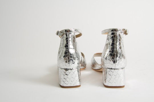 Rosa Silver Snake Heeled Sandals