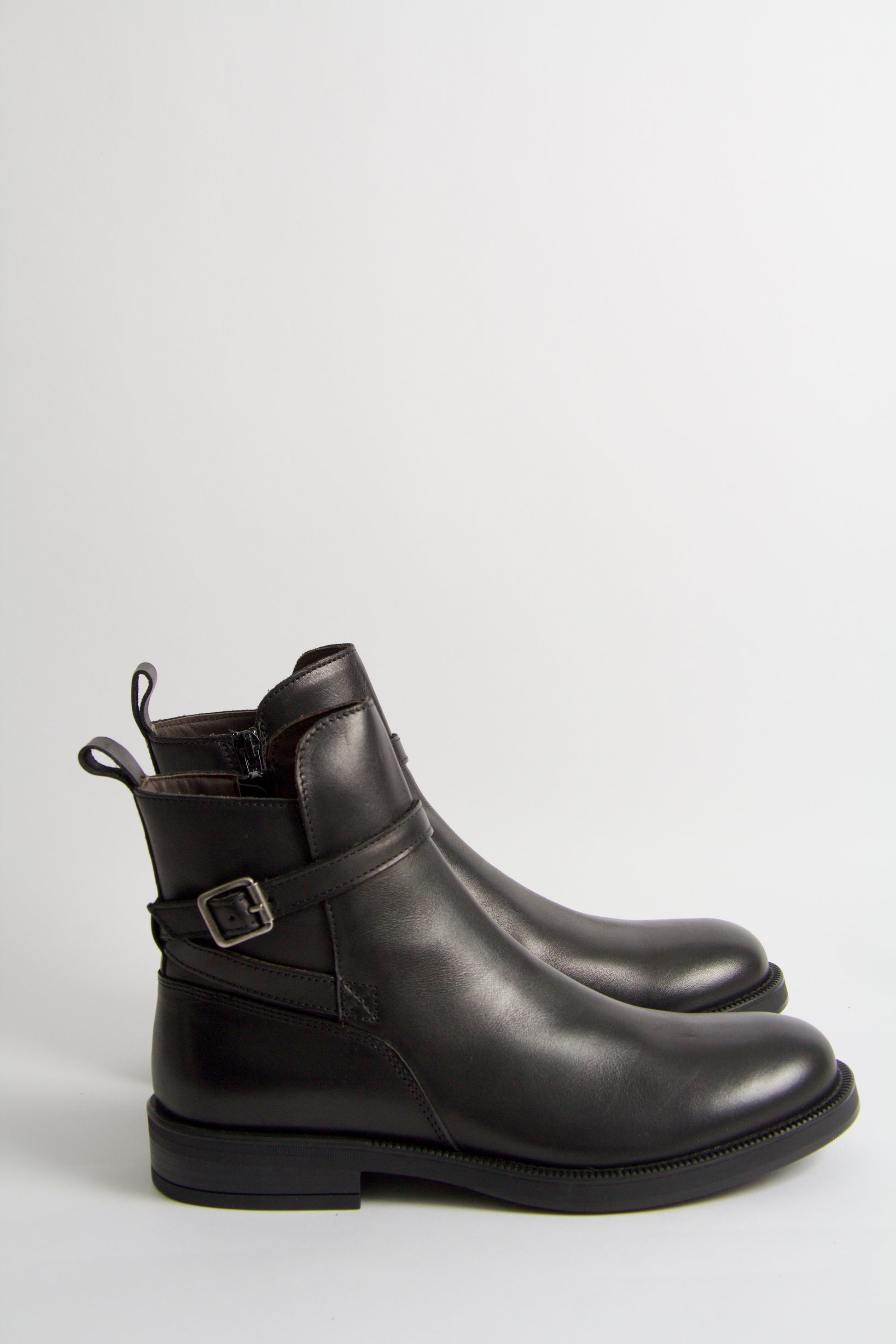 Classic jodhpur boots Ultra made in black vegetable tanned leather set on a rubber sole. The style has an adjustable strap with a buckle and a zip on the inside.