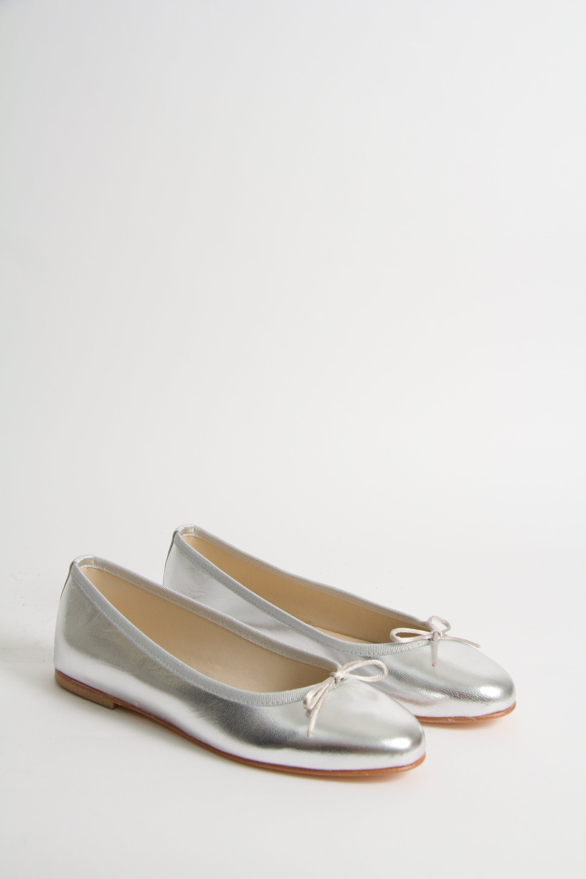 Classic ballerina Vanessa from Alberville is made in silver colored nappa with a round toe shape on a low heel. A classic ballerina that fits with everything.