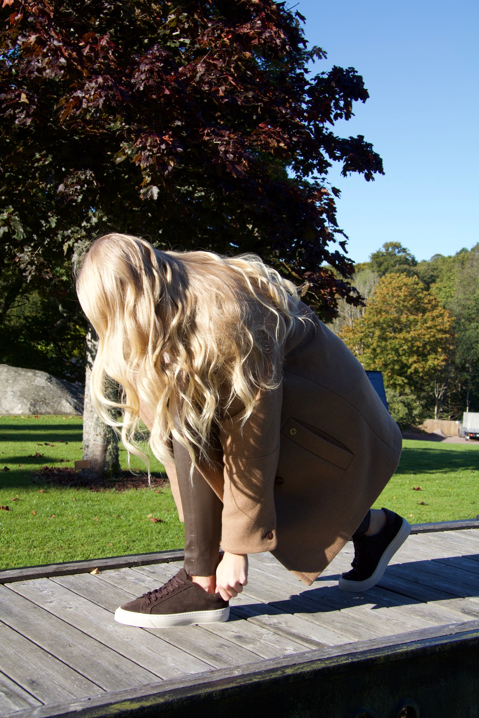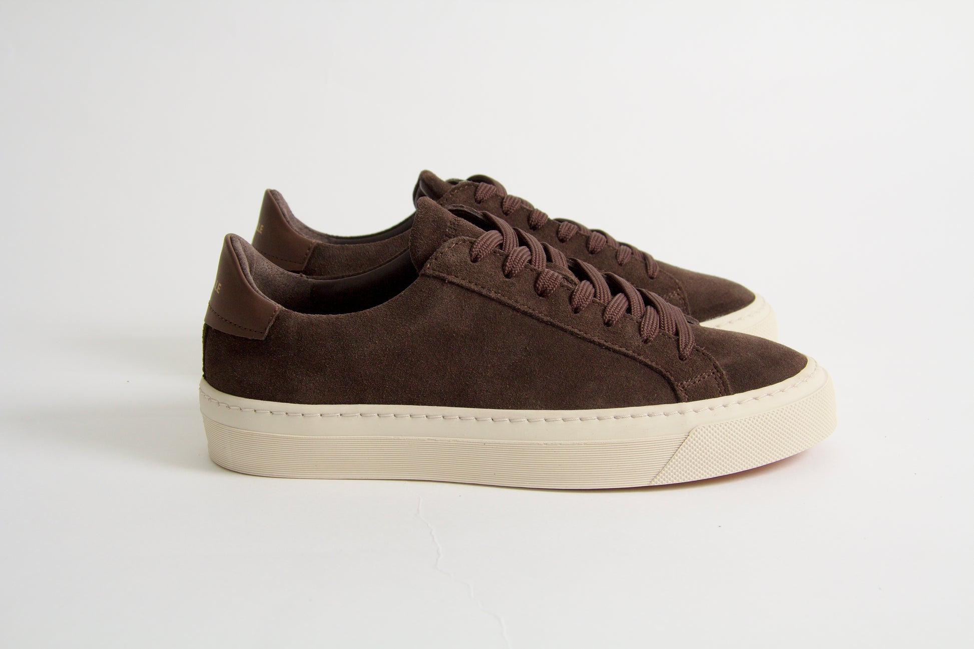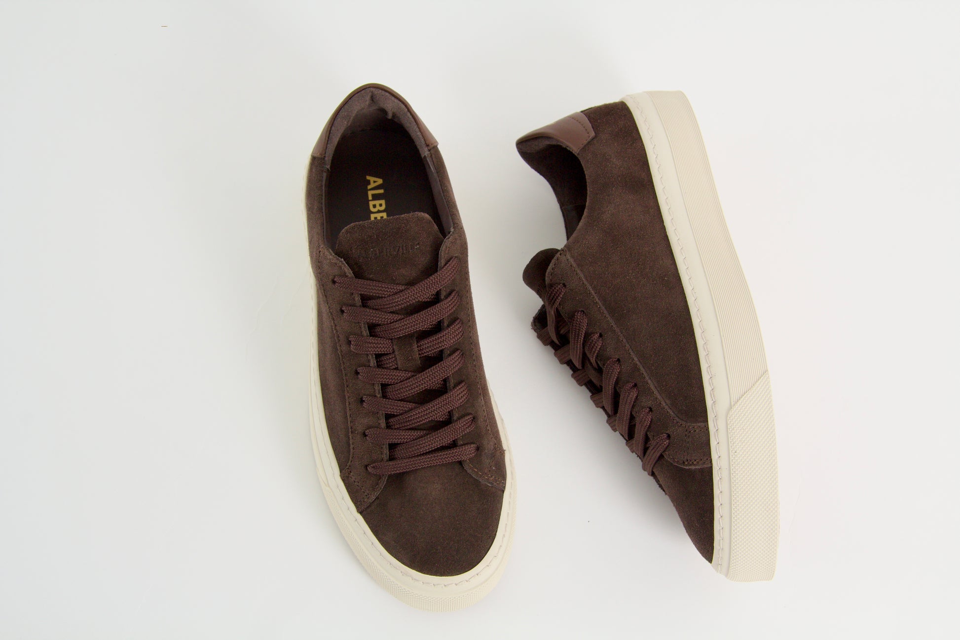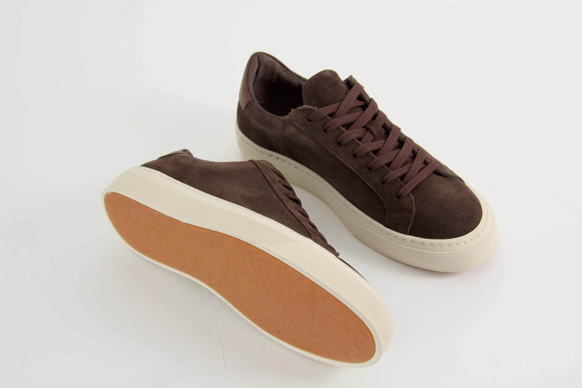 Minimalistic sneaker Wilde is made in dark brown suede with a matching lace-up fastening and an off white rubber sole. A classic sneakers that fits well to any outfit.