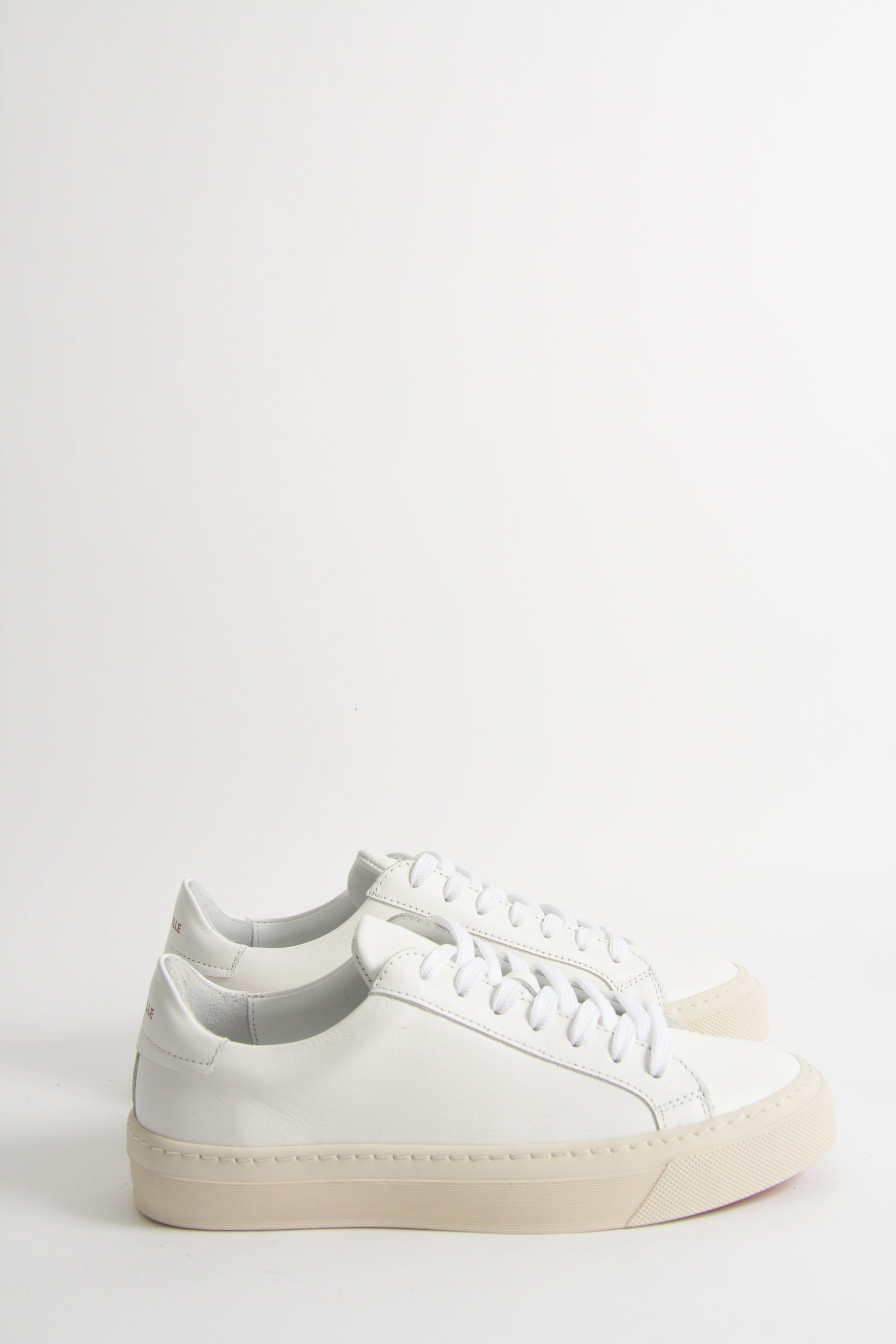 Wilde are minimalistic sneakers made in white calf leather with lace-up fastening in white and an off white rubber sole. A classic sneakers that fits well to any outfit.