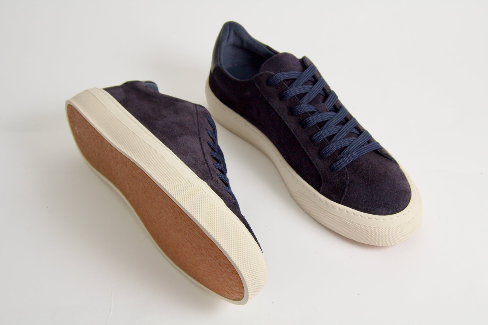 Wille is a classic navy sneaker made in soft suede with lace-up and rubber sole. A handmade and comfortable staple essential in any wardrobe.