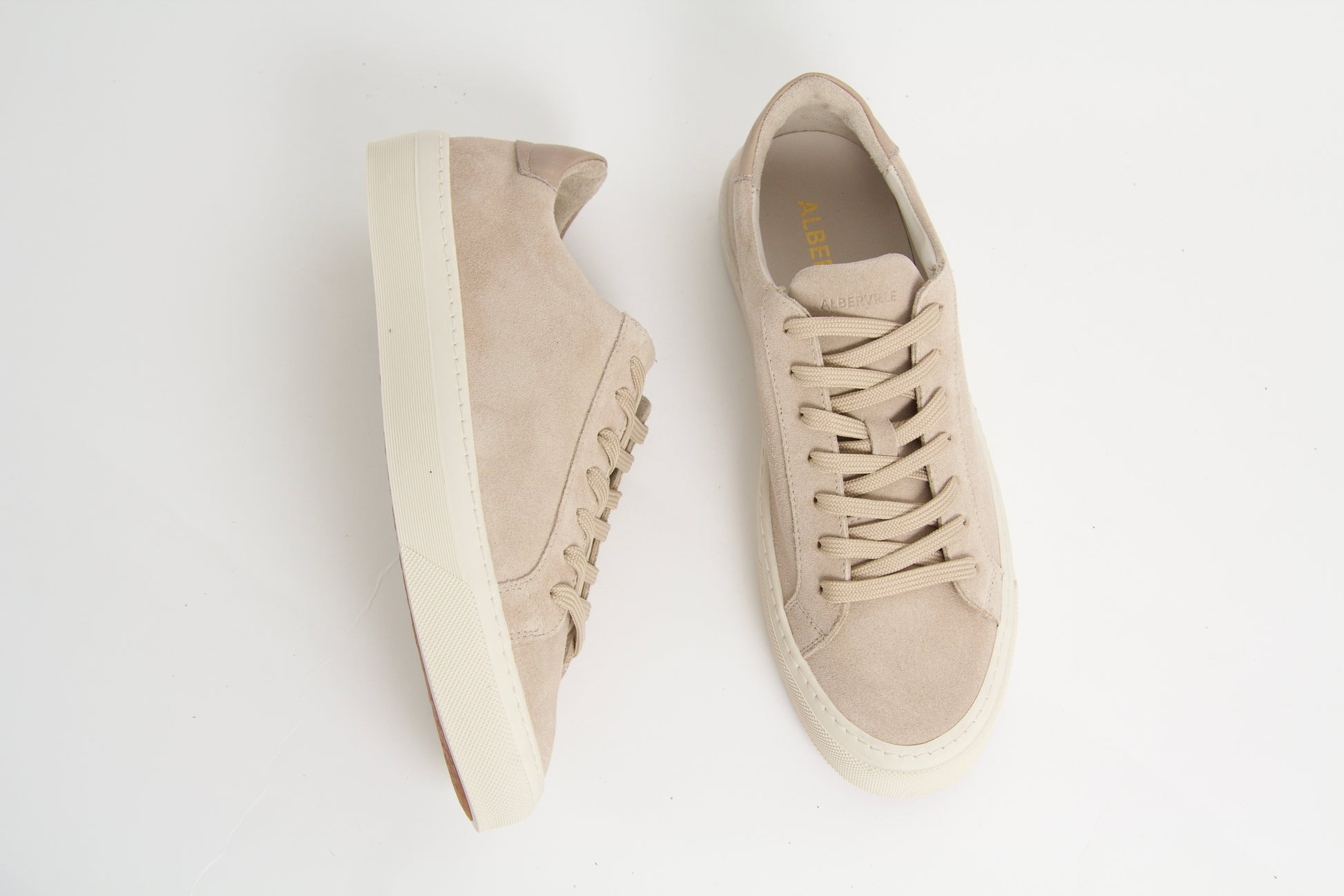 Wille is a classic sand beige sneaker made in soft suede with classic lace-up fastening and rubber sole. A handmade and comfortable staple essential in any wardrobe.