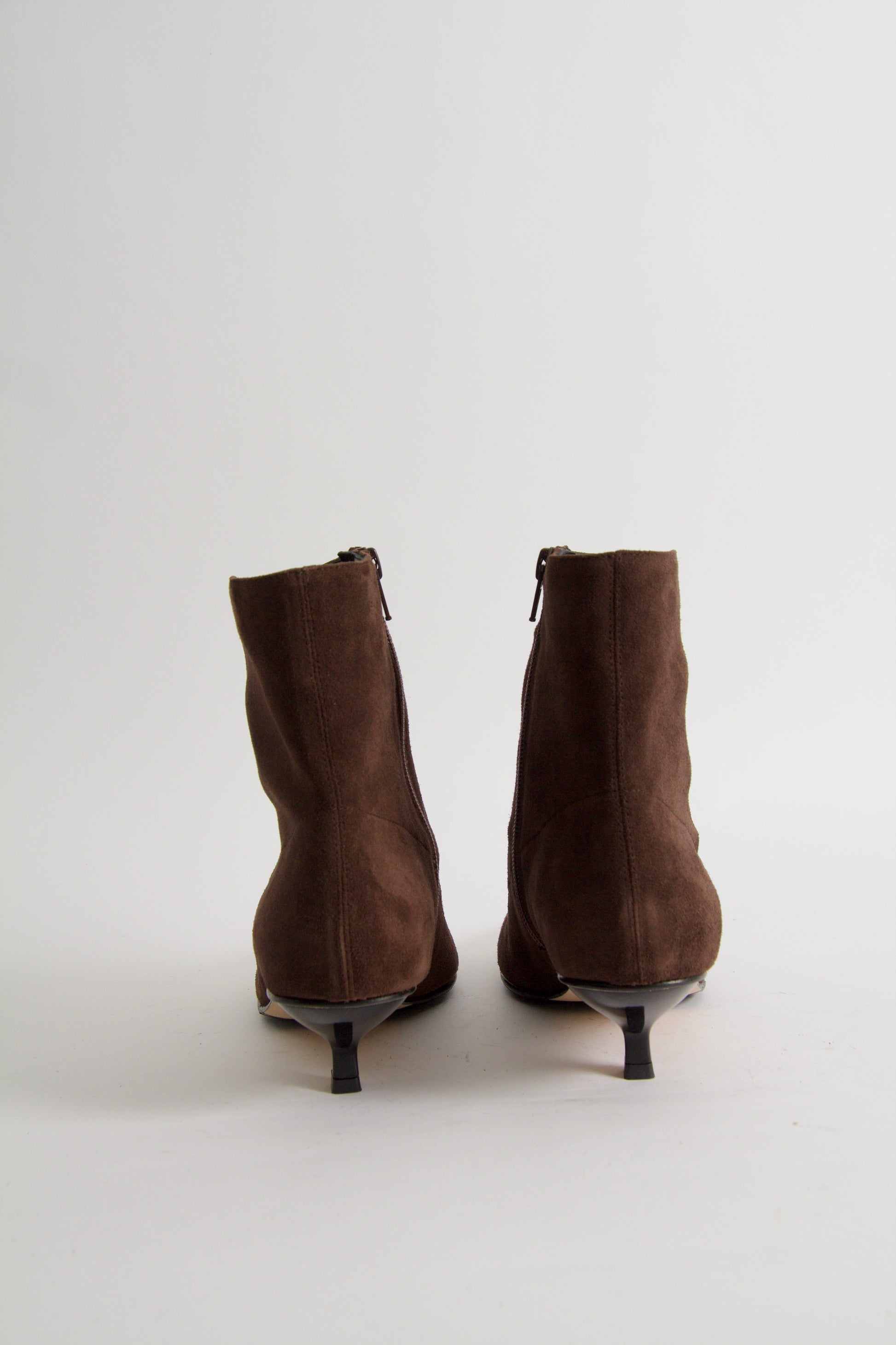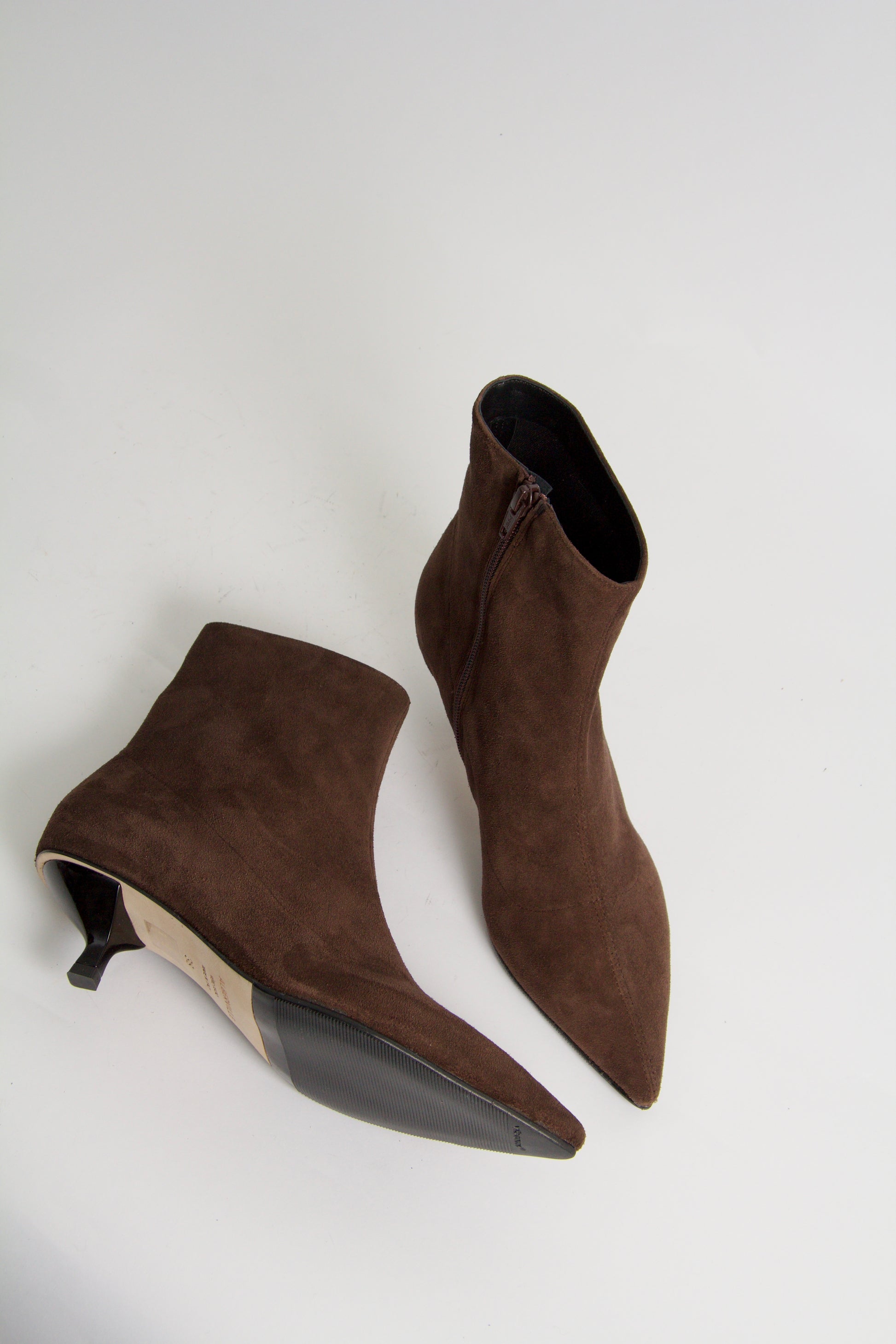 Yolanda is a boots on a low kitten heel. Made in chocolate suede leather. The style has a zip on the inside. The heel height is 45 mm which makes the boots very comfortable.